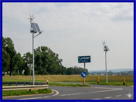 Autarke Solarstraßenleuchten Hybridsystem an einer Kreuzung
